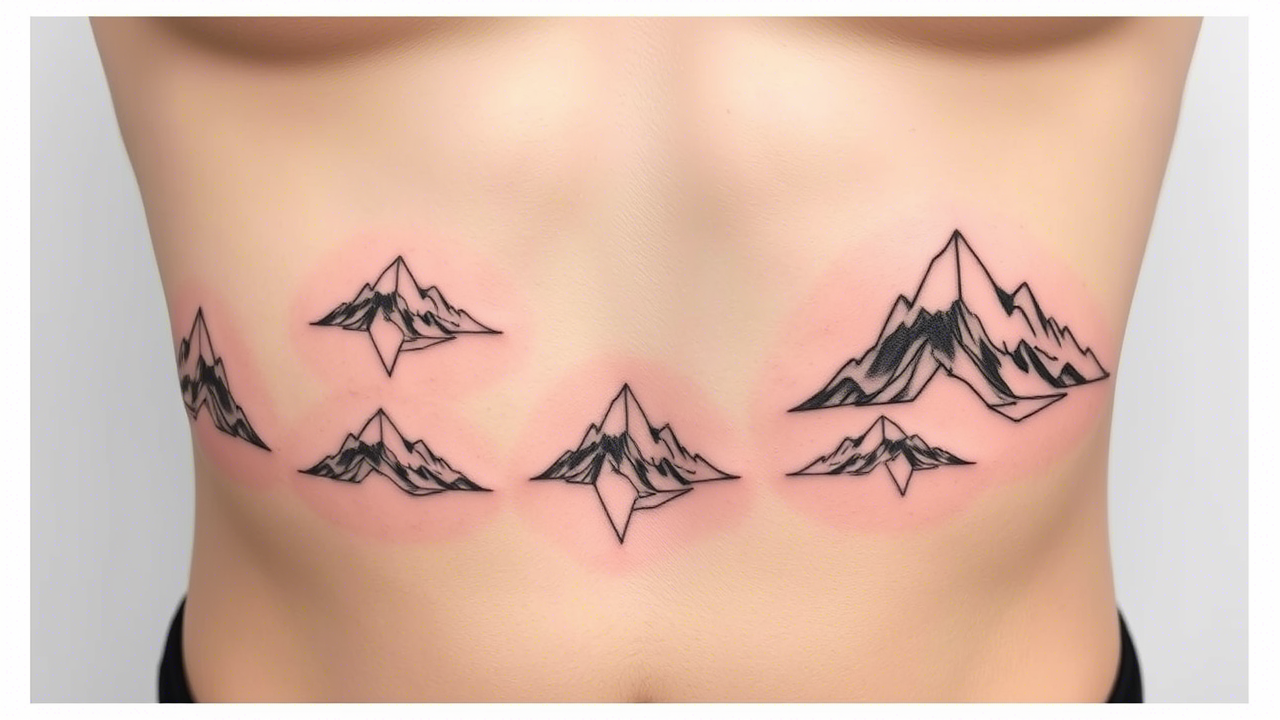 Here’s a curated look at 20+ abstract mountain tattoos carved right into the ribs—where breath meets bone and story meets ink.