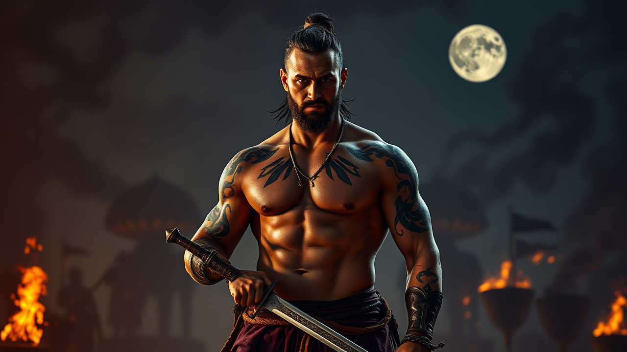 Picture a lone raider wrapped in cloth. Only his eyes visible. Blade curved. Posture tense.